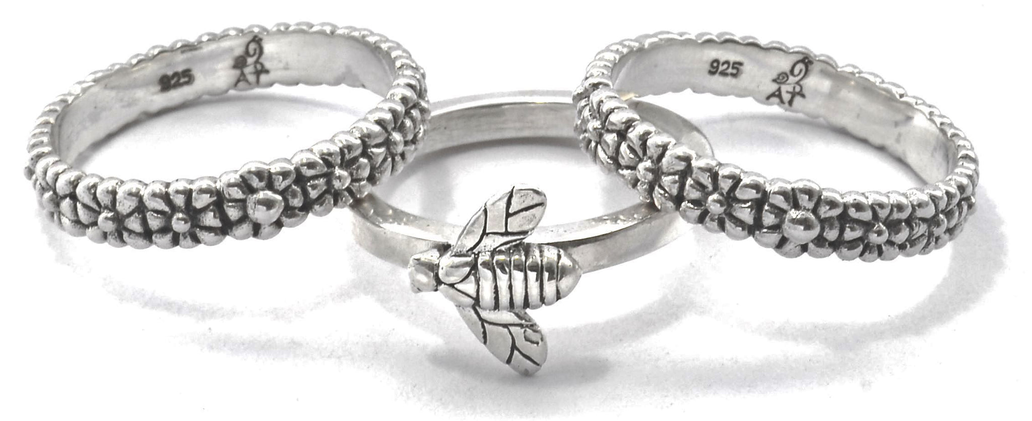 PADMA Set of 3 Bee & Flower Stack Ring Set