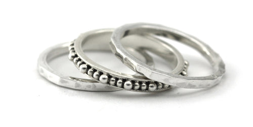 PADMA Set of 3 Beaded and hammered Stack Ring Set